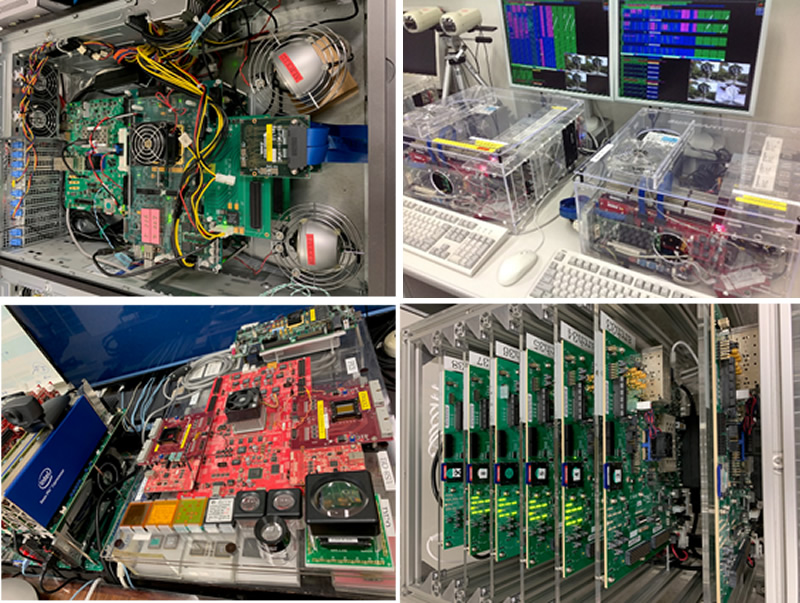 富士通製スパコン富岳エントリモデル、NVIDIA製V100*4、RTX3090*4、GTX1080Ti*10、XEONサーバや、XEON/PHIサーバ、シミュレーション用サーバ、XILINX製ALVEO U280、大規模FPGA群、ZYNQボード群、試作LSI試験装置など、多数の実験設備があります。回路評価には、VDECを利用した豊富なCADツール、先端プロセスのテクノロジライブラリが揃っています。現在、シストリックリングアクセラレータ、アナログアクセラレータ、ニューロモーフィックLSI,ブロックチェインアクセラレータなどを開発しています。各自の机にはマルチモニタの高性能Linux-PCを設置しています。
